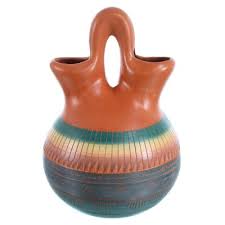 Storytellers are also a pottery art form. Jamez, Santo Domingo, and Isleta Pueblos have some of the best storyteller potters. Each piece is hand formed from clay near the pueblo. Each story teller has an adult surrounded by a group of children listening to a story or the of a legend tribal leader. Each of the story tellers is an original piece of work. Recently there has been the introduction of an animal adult like a bear with a group of cubs listening to a story. The artists are always coming up with new ideas and variations. They're a great one of a kind collectors piece.